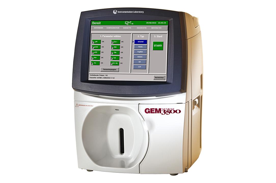The GEM Premier 3500 Blood Gas Analyzer with Intelligent Quality Management (iQM) offers unprecedented simplicity, flexibility and reliability in a system that is fully customizable to the needs and throughput of any point-of-care site or laboratory. The multi-use GEM Premier cassettes and intuitive touchscreen offer maintenance-free simplicity. The large sample input, barcode scanner and comprehensive test menu with multiple configuration options provide faster, easier and more efficient diagnostics in the acute care setting.